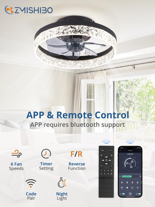 View full details19.7in Low Profile Flush Mount Bladeless Ceiling Fan with 3 Color Dimmable LED,6-Speed